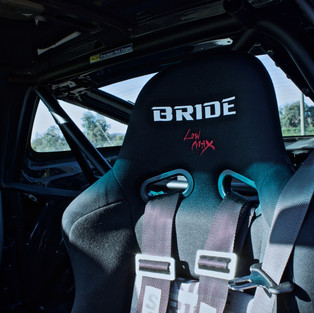 Paint ticked off it was time to put the Car's interior or what's left of it, back in the cabin. To add some rigidity, a front and rear strut brace we're installed. Helping meet track regulations for more serious events in the future, a 6-point bolt in AGI Cage was fitted as well. Two sets of Sabelt 5 point harnesses were fastened off to the cage to hold Pat and Brett firmly into the Genuine Bride ZEIG 3 Low max seats as they would fly around long sweeping bends. Upgraded rotors, pads and brake lines all round and some coilovers were the last things done before the car was taken to the track for shakedown.